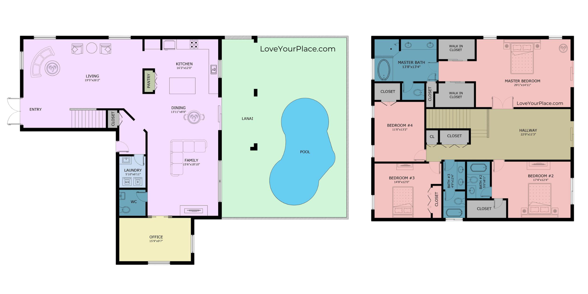 This stylish home offers 4 bedrooms, 3.5 baths, a large private office that can serve as a 5th bedroom, and a versatile loft, balcony access with a view of the pool and backyard, and pond. The kitchen overlooks the pool and great room. Ample counter space with an additional oversized granite island and stainless-steel appliances. Kitchen has a reverse osmosis water purification system installed. The 3-car garage comes with additional storage shelving. Floorplan appeal for a multi-generation family with two bedrooms en-suites. Each en-suite has a walk-in in closet, and easily accommodates King beds in each. The primary suite features a walk-in shower with a garden tub and a closed water closet. The secondary suite features a walk-in shower in its en-suite bathroom. Expanded covered patio space next to the pool, perfect for entertaining and enjoying more of your outdoor space. Newer roof, and AC system. Recent stamped concrete driveway is as beautiful as pavers without the need to pull/spray to maintain the weeds and repack. Pool has been resurfaced. Pool deck recently resurfaced & painted. Full Irrigation system. Amenities include a large community pool with dual slides for the little ones, a Cabana with pool restrooms, and a completely fenced-in playground with a jungle gym. One of the LOWEST HOA fees you can find without losing out on community Amenities. Located in the desired area between University Parkway and SR70, you have more shopping and restaurant options than you are ready for. Multiple Gulf beaches are nearby. Amenities include a large community pool with dual slides for the little ones, a Cabana with pool restrooms, and a completely fenced-in playground with a jungle gym. One of the LOWEST HOA fees you can find without losing out on community Amenities. Located in the desired area between University Parkway and SR70, you have more shopping and restaurant options than you are ready for. Multiple Gulf beaches are nearby. Doll house and 3D Virtual Tour available.
